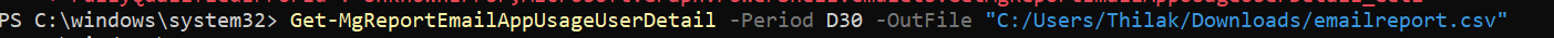 Get-MgReportEmailAppUsageUserDetail -Period D30 -OutFile "C:/Reports/EmailAppUsageDetail.csv"