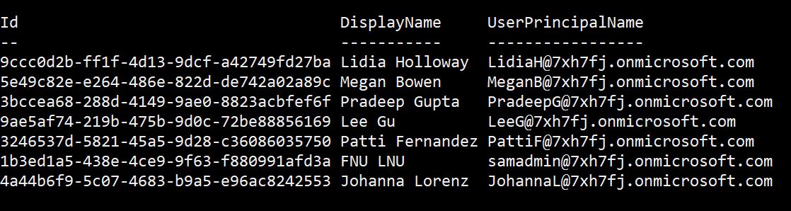teamId variable with the ID of the team you want to query. [Use Get-MgTeam cmdlet to get the Team ID and then add it to the script].Get-MgTeamMember cmdlet is used to retrieve all members of the specified team using the -All parameter.foreach loop iterates over each team member. The AdditionalProperties property of each member is accessed to retrieve the userId.userId is not null or empty, the Get-MgUser cmdlet retrieves the user's details. These details are then stored in a custom PowerShell object containing the Id, DisplayName, and UserPrincipalName of the user.Format-Table cmdlet with the -AutoSize parameter for better readability.