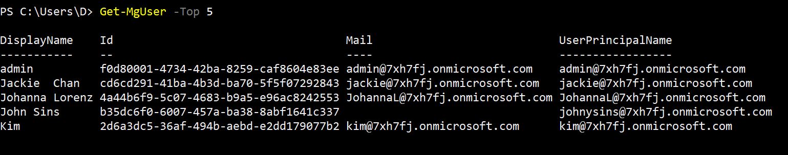 - Get-MgUser: Returns only the first batch of users (the number in a batch can depend on the Microsoft Graph API's default or specified by the -Top parameter).