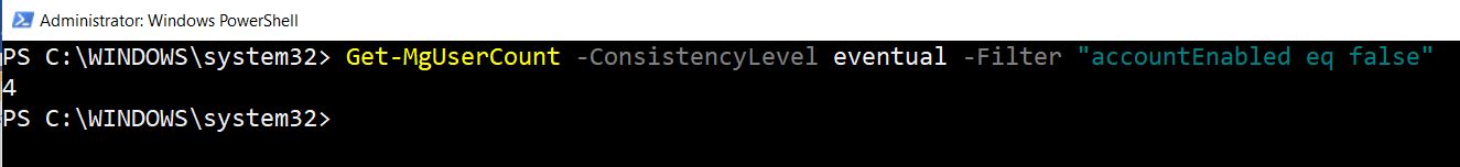 Get-MgUserCount -ConsistencyLevel eventual -Filter "accountEnabled eq false"