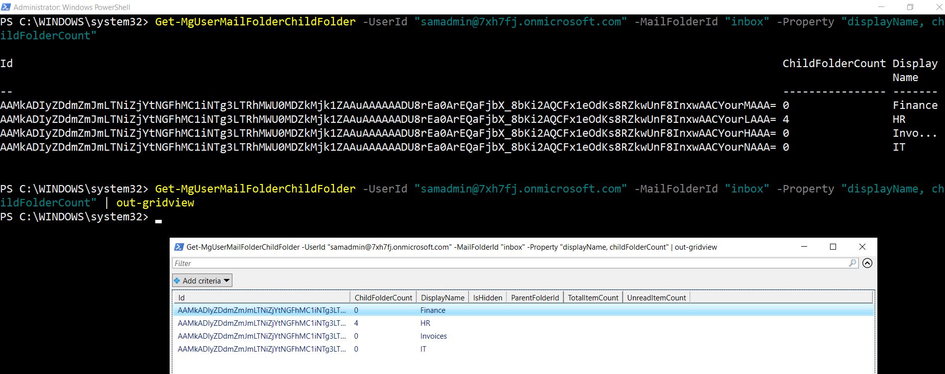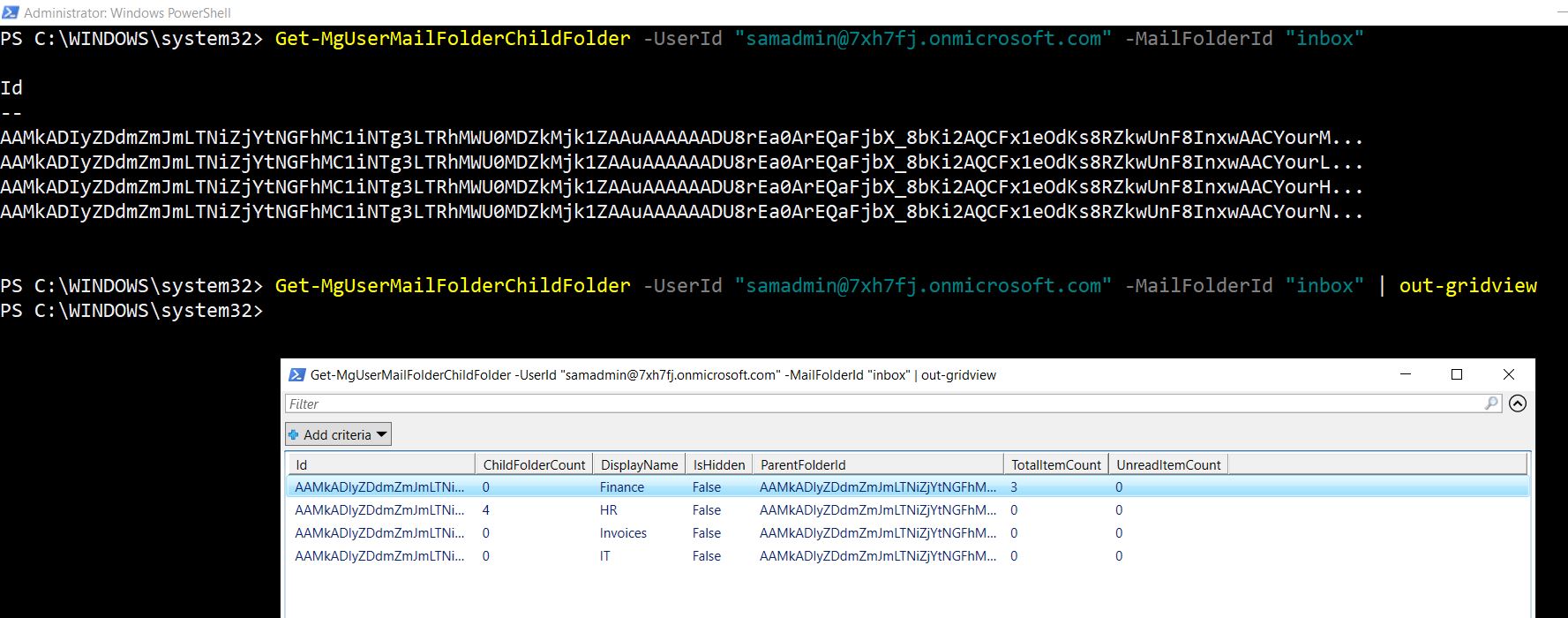 Using Get-MgUserMailFolderChildFolder in Graph PowerShell