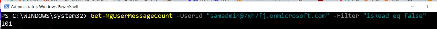 Get-MgUserMessageCount -UserId "<UserPrincipalName7gt;" -Filter "isRead eq false"