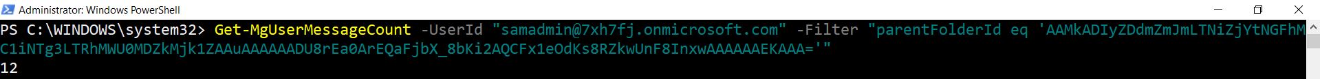 Get-MgUserMessageCount -UserId "user@domain.com" -Filter "parentFolderId eq 'AAMkAGI2TAAA='"