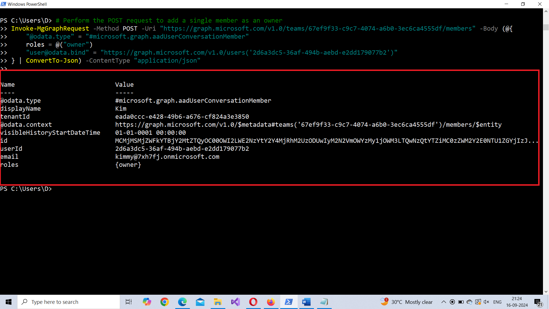 https://graph.microsoft.com/v1.0/teams/{team-id}/members).# Perform the POST request to add a single member as an owner