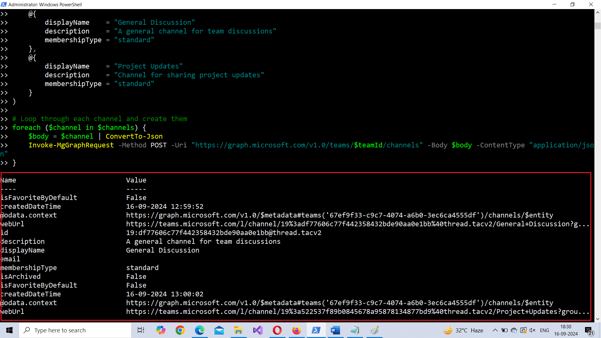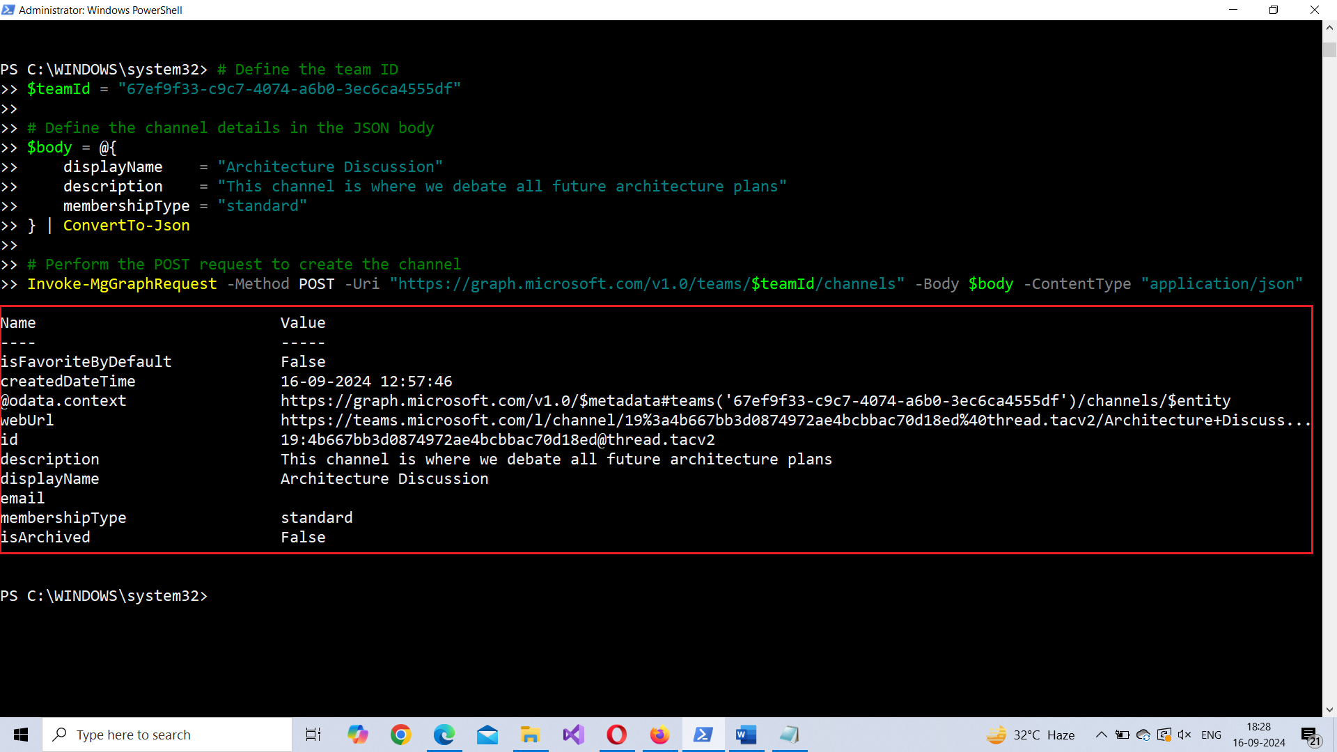 By leveraging the flexibility of Invoke-MgGraphRequest, IT administrators can automate and customize channel creation for their specific needs, making it a highly valuable tool in managing large teams or dynamically adjusting to project requirements.