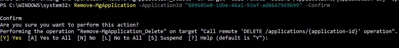 For further details, refer to the official Microsoft Documentation: Remove-MgApplication