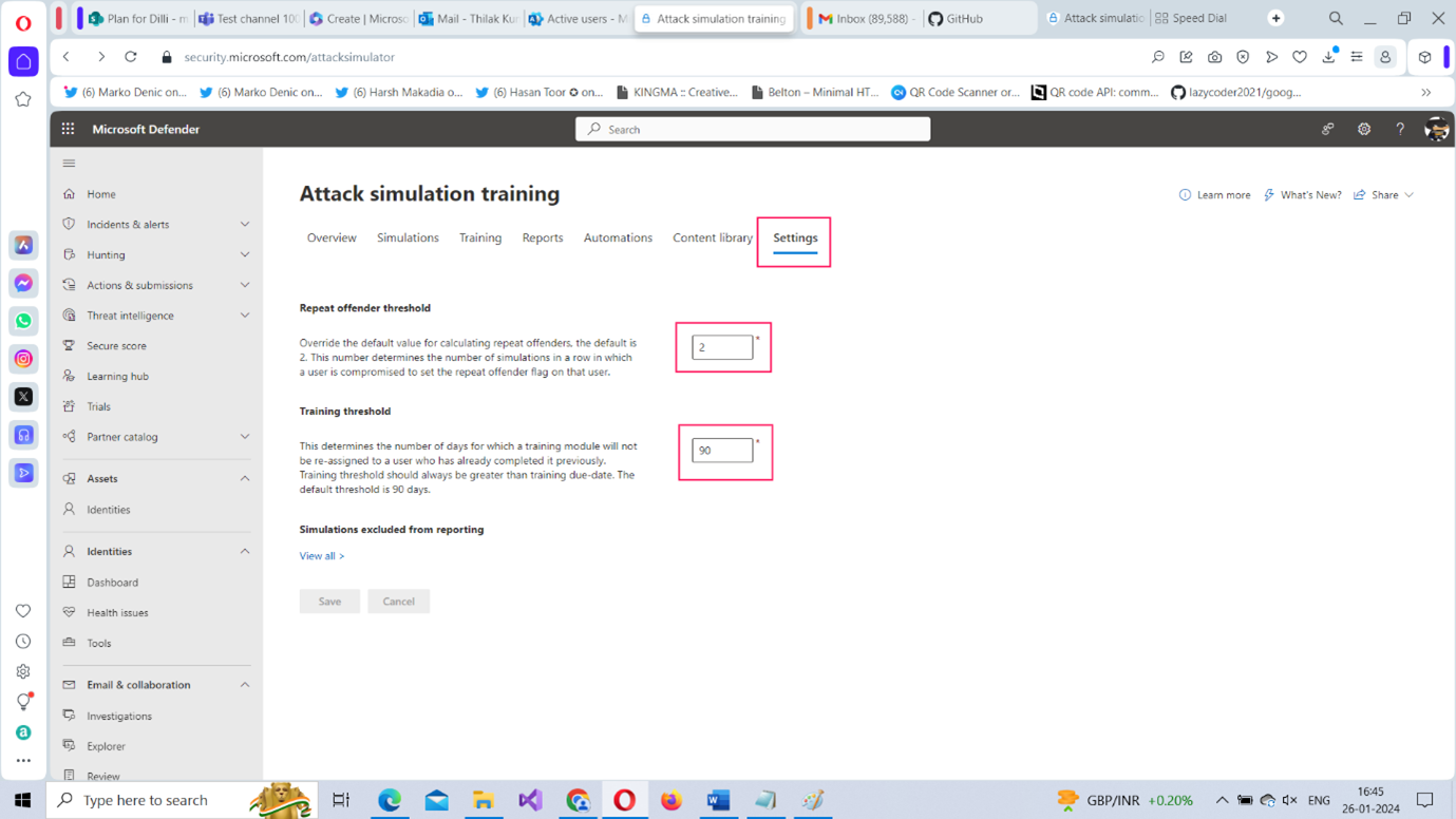 You also get to customize a couple of attack simulation training-related settings under the Settings tab as shown in Figure 24.