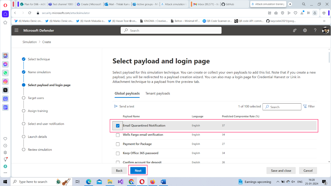 For a Credential Harvesting attack, you get the payloads as shown in Figure 5. Let’s select the Email Quarantined Notification option as the front for carrying out the attack and click Next to proceed further.