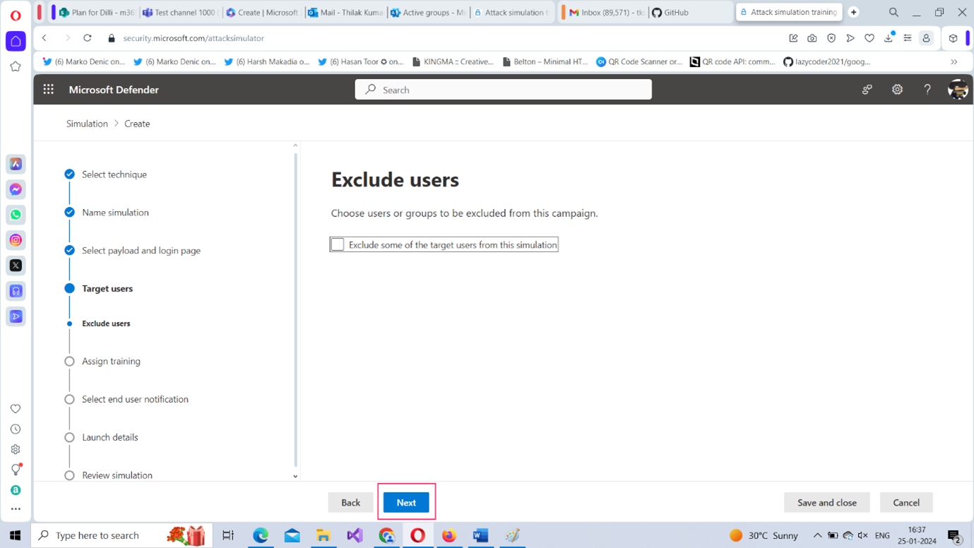 Note: You can also exclude some users or groups from the simulation attack. But we are going to skip this step and click Next to proceed further as shown in Figure 7.