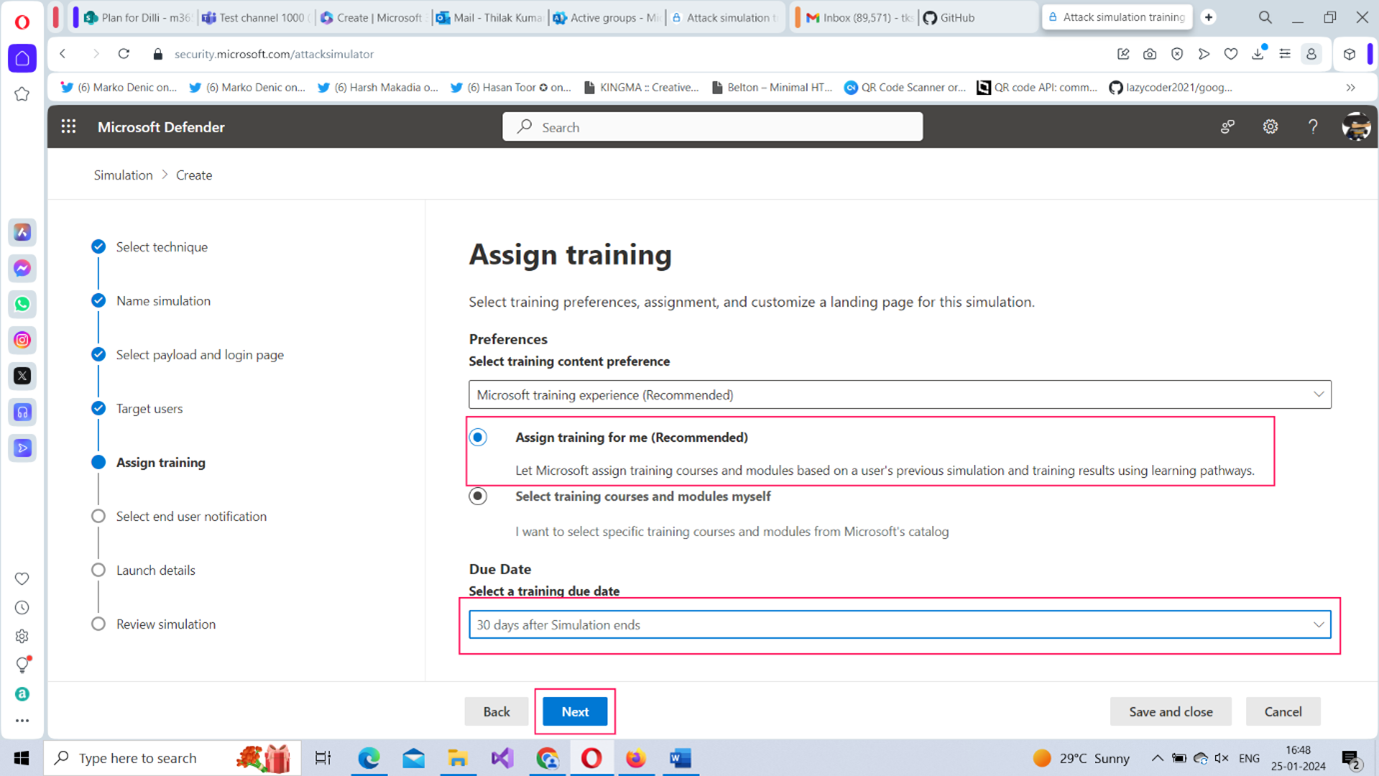 Assist Training: : This section helps you choose the training programs to be assigned to those targets who fail the security test. It is recommended to go with the default option Assign training for me (Recommended) – as shown in Figure 8 - where Microsoft selects the training programs for the targets.