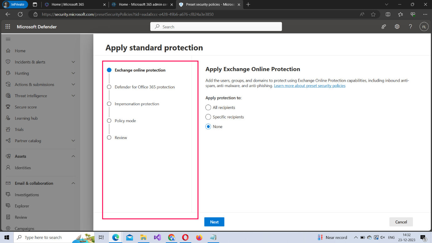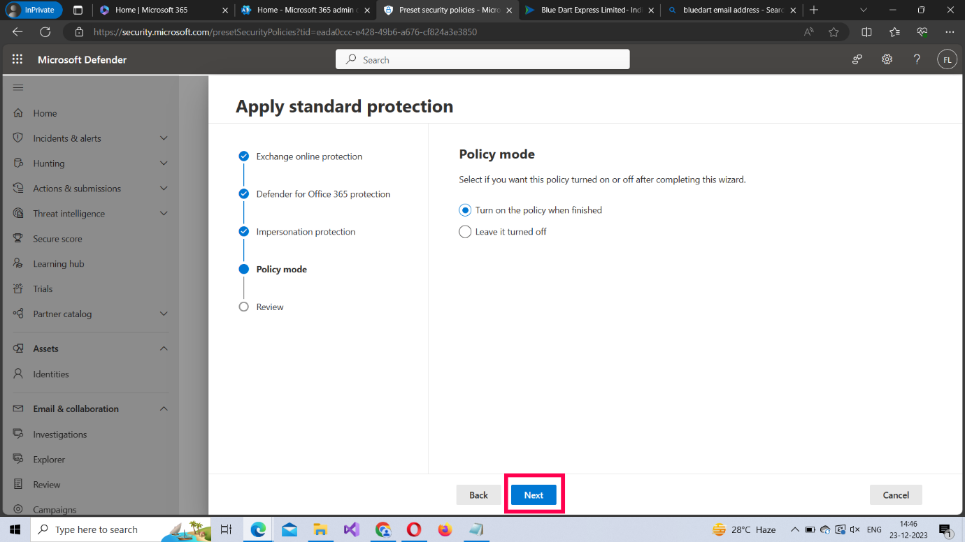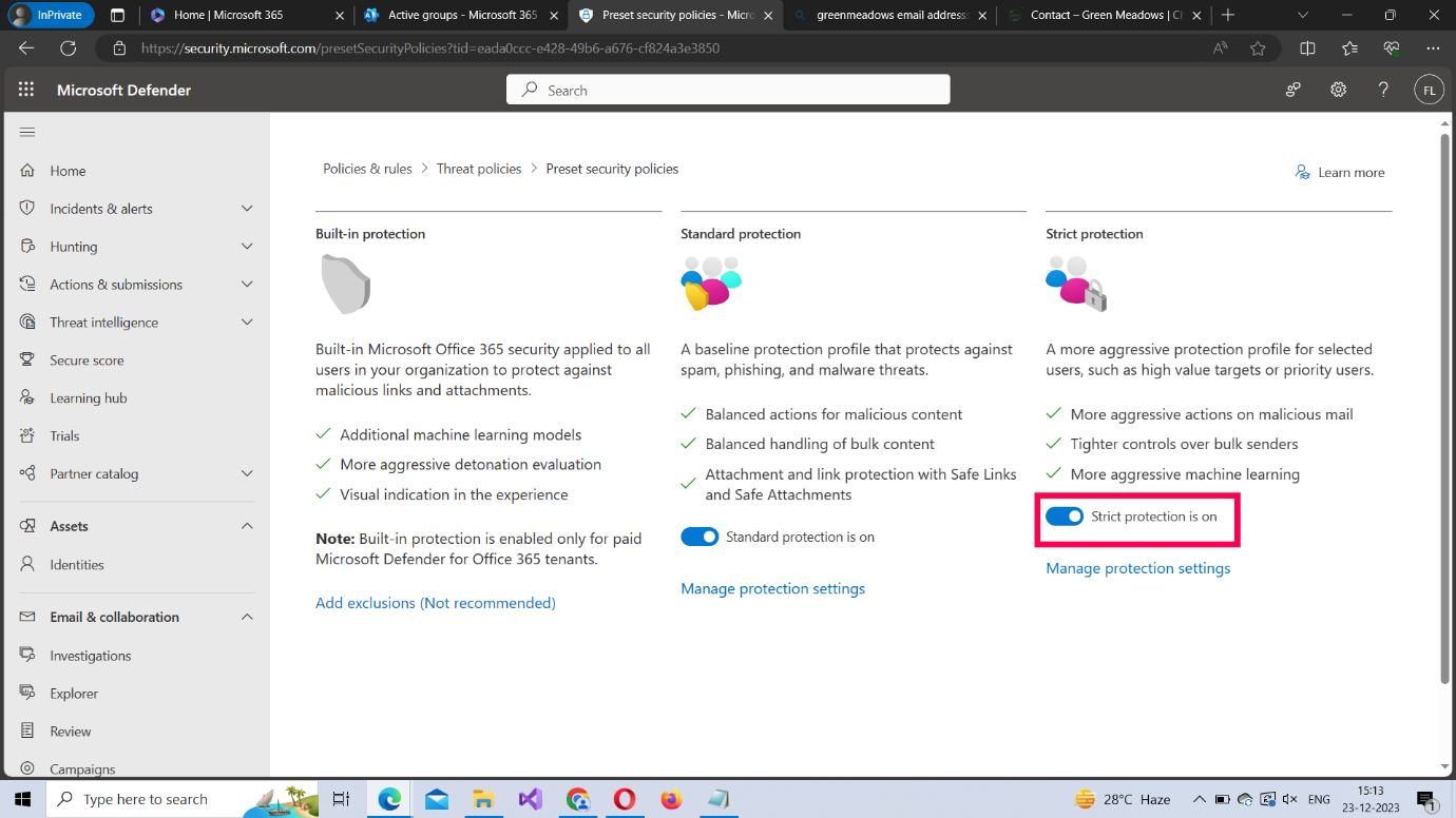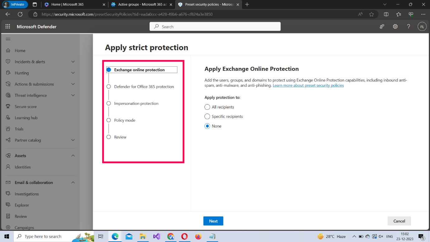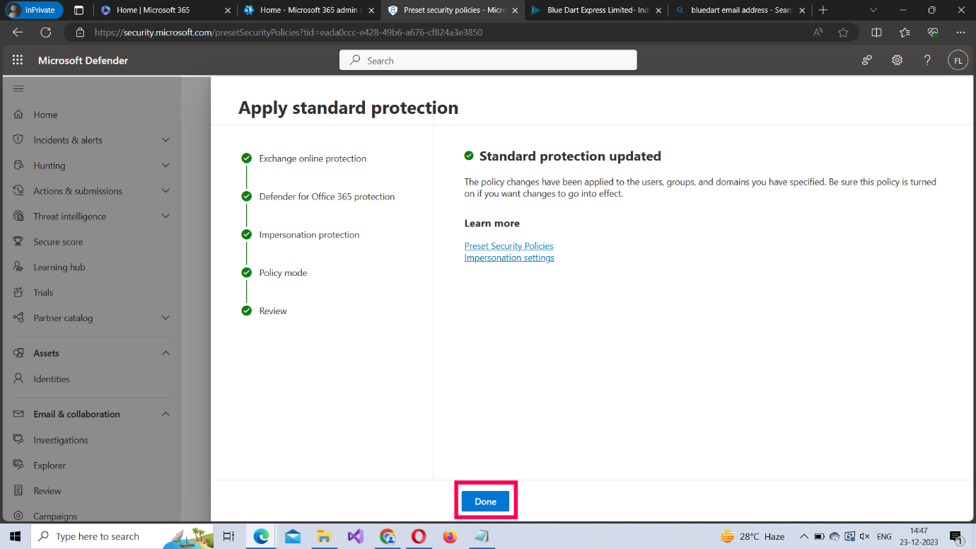 Now that you know how to enable both Microsoft Defender standard and strict preset security policies, in the next article, let’s look at some of the differences between these two policies and perform a simple phishing mail-related test to confirm the same.
