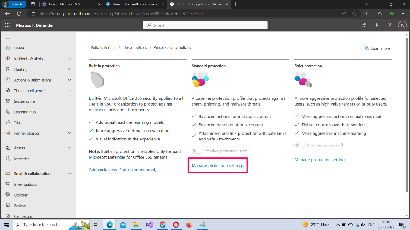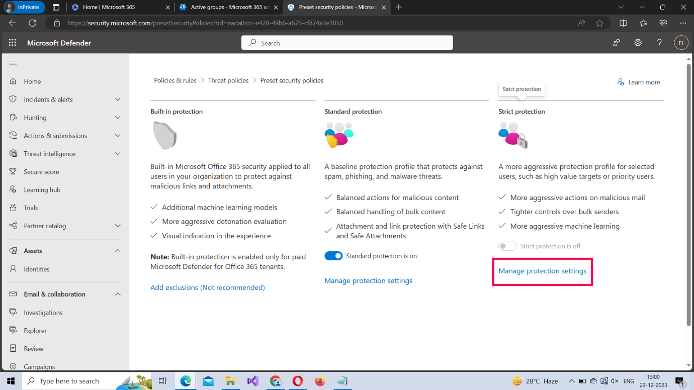 Select Manage protection settings under the Strict protection policy as shown in Figure 3.